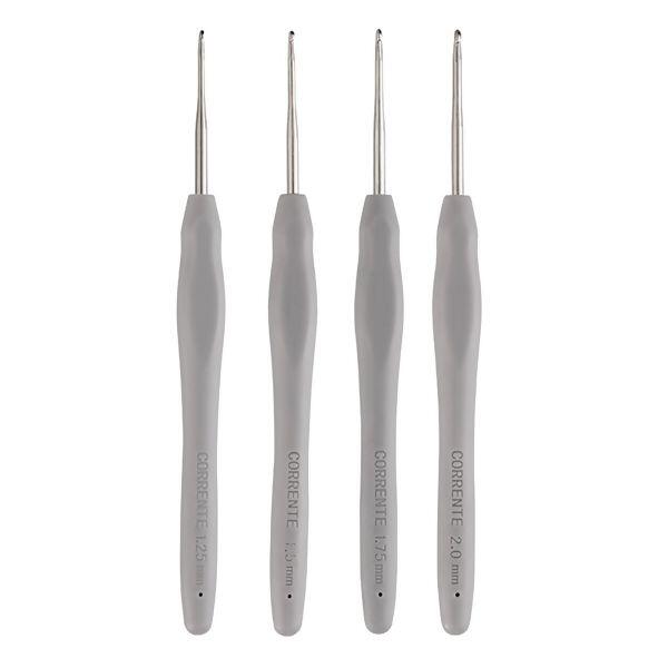 Agulhas de crochê de aço niquelado com cabo anatômico emborrachado.Perfeitas para o crochê.
