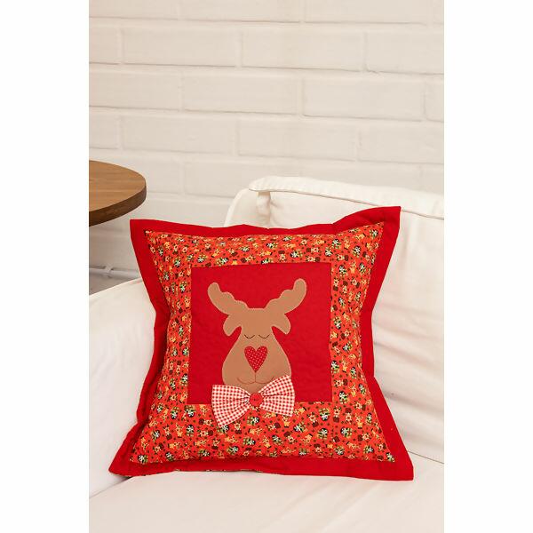 Junte o meio do laço com um botão e pregue na parte da frente da almofada.
