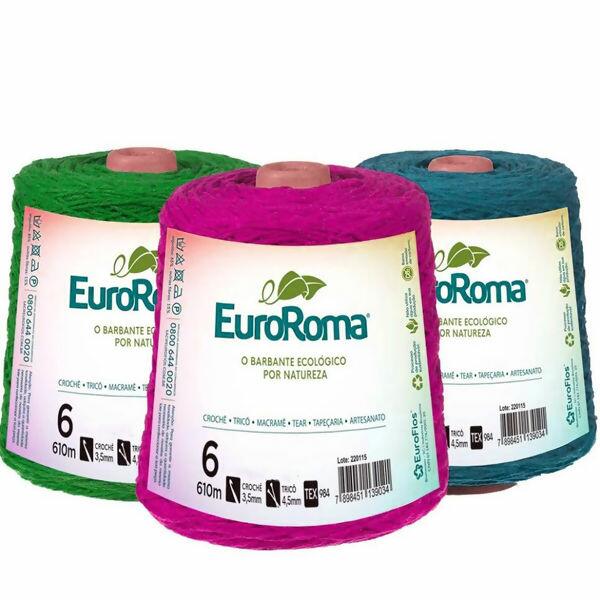O barbante EuroRoma é desenvolvido através de matéria-prima reciclada, voltado para o artesanato.Produzido de forma sustentável, este barbante apresenta qualidade, beleza e versatilidade, ideal para crochê, tricô, macramê, tear, tapeçaria e artesanato.