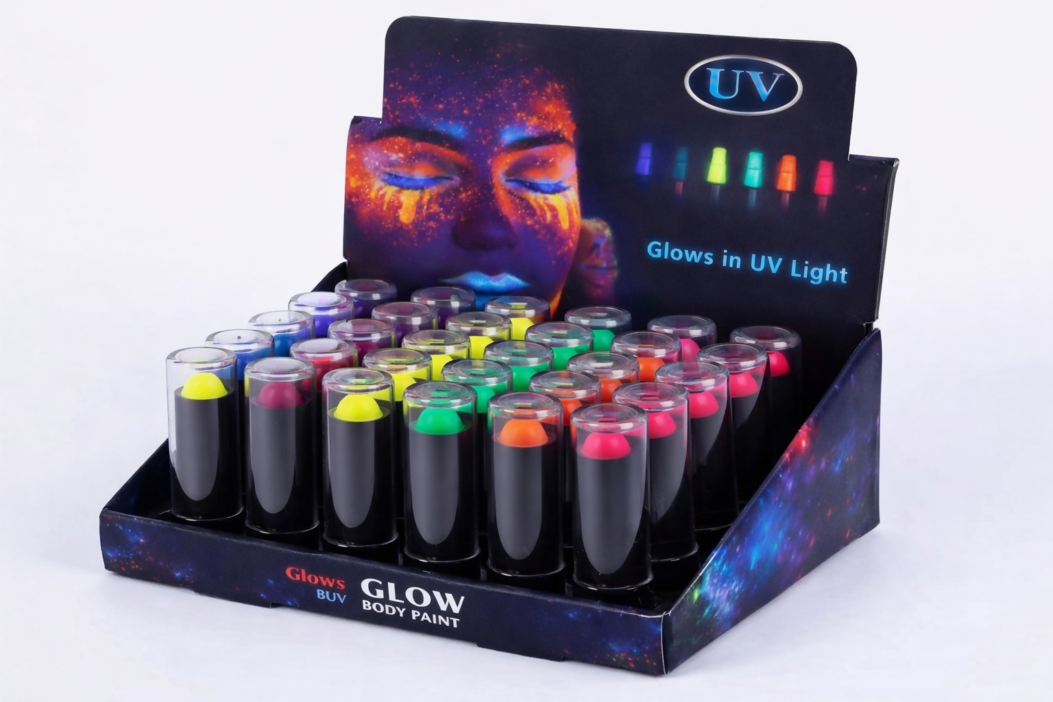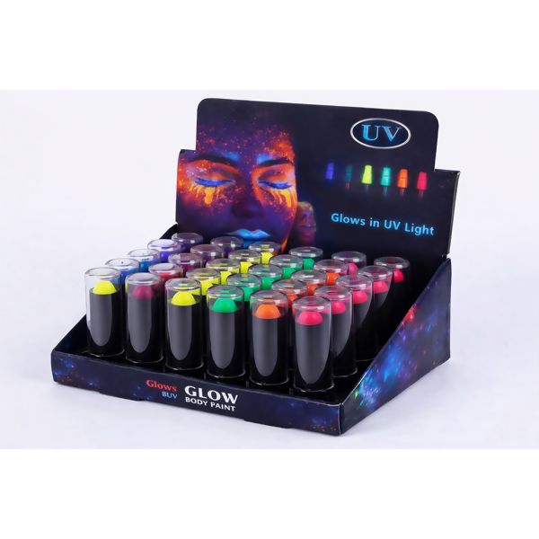 Batom com cores neon intensas que brilham sob luz UV. Perfeito pra festas, baladas, eventos e maquiagem artística. Fácil de aplicar e impacto imediato.