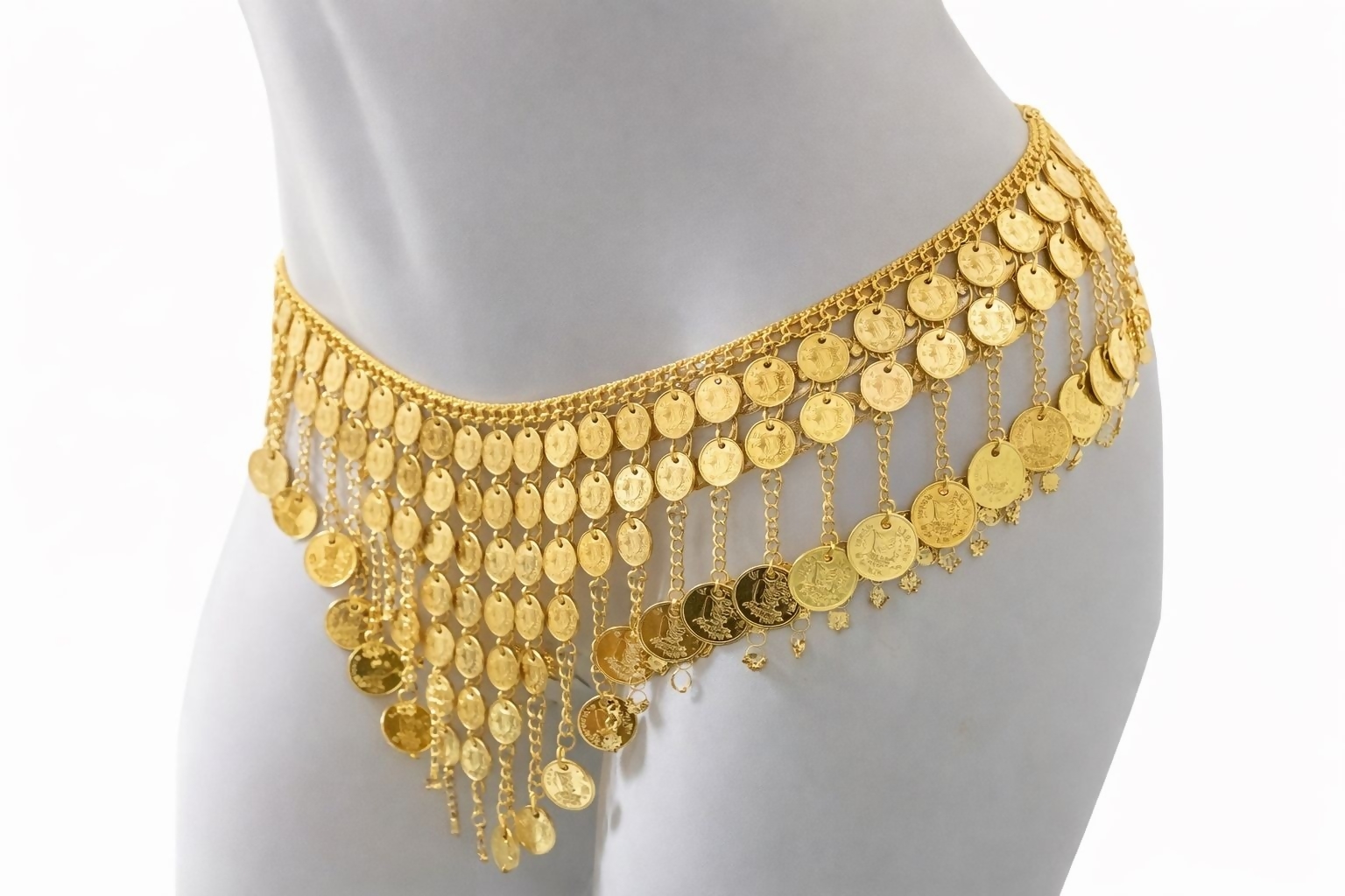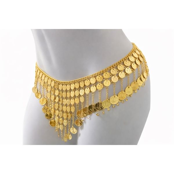 Cinto Odalisca – dourado, com moedas delicadas que criam brilho e movimento a cada passo. Um acessório marcante que realça a cintura e traz charme e sensualidade ao look!