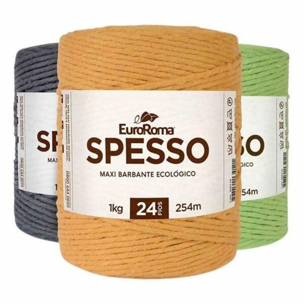 O EuroRoma Spesso é um barbante de 24 fios desenvolvido com matéria-prima reciclada, perfeito para as técnicas de macramê, crochê, tricô e tear. Baseado em uma tendência de arte com fios mais grossos, onde a peça cresce com velocidade nas mãos do artesão, resulta em macro texturas com pontos super evidentes, muito em alta na decoração e também é ideal para maxi amigurumis.