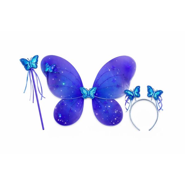 Com diadema delicada, asas vibrantes e varinha combinando, o conjunto traz cores alegres e acabamento encantador, ideal para festas, apresentações escolares, Carnaval ou brincadeiras do dia a dia.