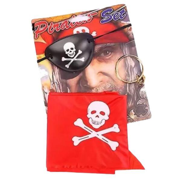 Descrição Kit pirata - Bandana, brinco e tapa-olho