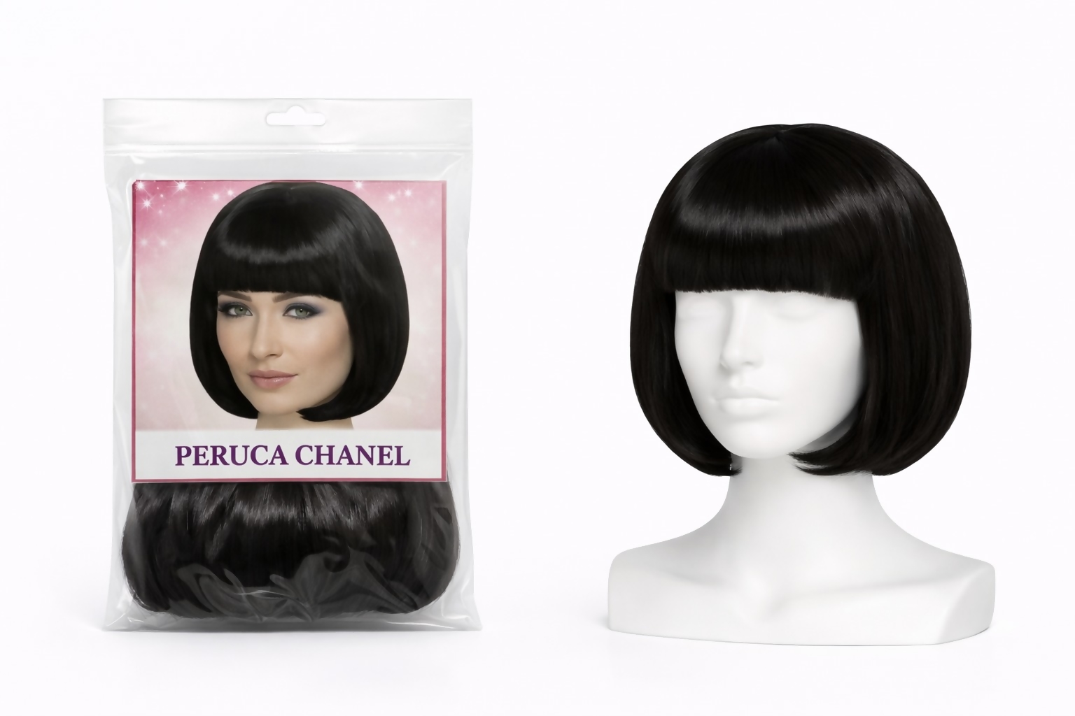 Peruca preta chanel, perfeita para complementar o seu look de Carnaval ou Hallowenn!