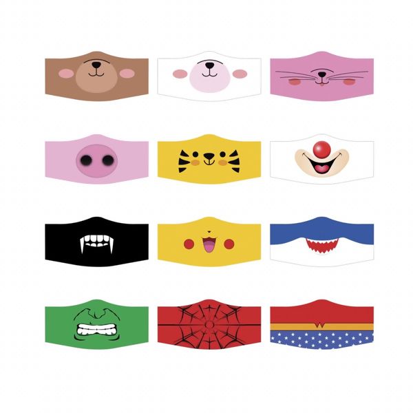 Faixa de tecido para máscaras com 12 estampas diferentes. Molde anatómico.