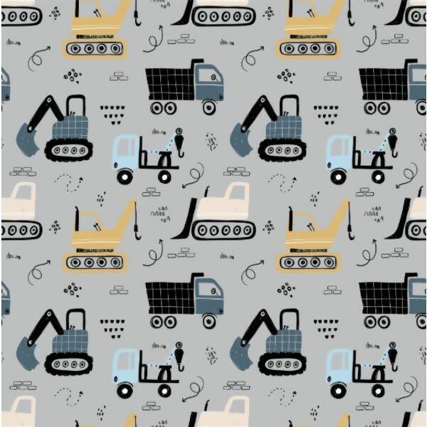 Descrição Tecido Tricoline Bahamas Artesanato 6179 - Caminhões Obra - 0,50 x 1,50