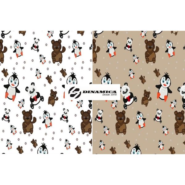 Tecido Tricoline Luxor Estampada - Urso e Pinguim - 0,50 x 1,50 Selecione sua cor