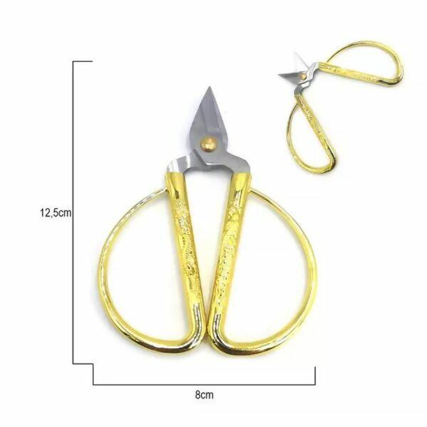 Tesoura para costura com alta precisão de corte, super resistente, perfeita para corte de fitas de gorgurão e cetim, essa é a tesoura queridinha das laceiras. Possui um design despojado com estampa em alto relevo com cabo dourado e lâmina em aço inox.